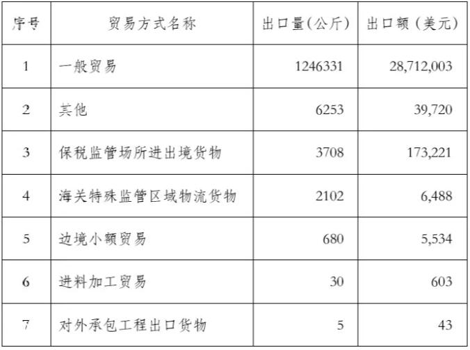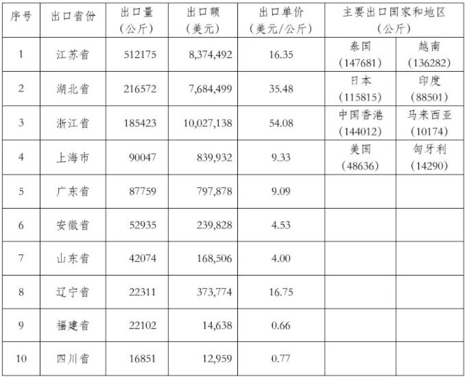 在主要的三個進口省份中,江蘇省高純石英管93%經過一般交易的方法進口,湖北省則91%經過海關特殊監管區域物流貨物方法進口,而浙江省的高純石英管則是兩種進口方法各占一半。2?出口狀況